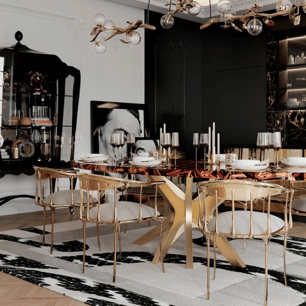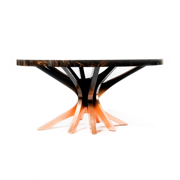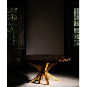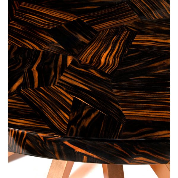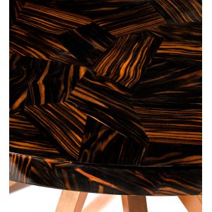 Table with a top made through marquetry in ebony leaf. Its base is made from wood, lined with golden leaf. Finished with high gloss varnish.