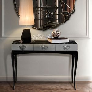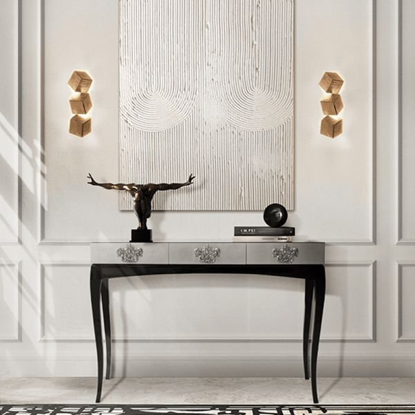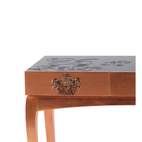 Wood, Gold leaf, Polished Brass, Black Glass