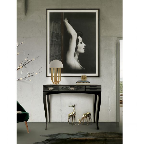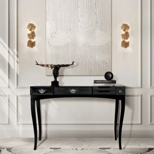 This console bases is made from wood and tempered glass.