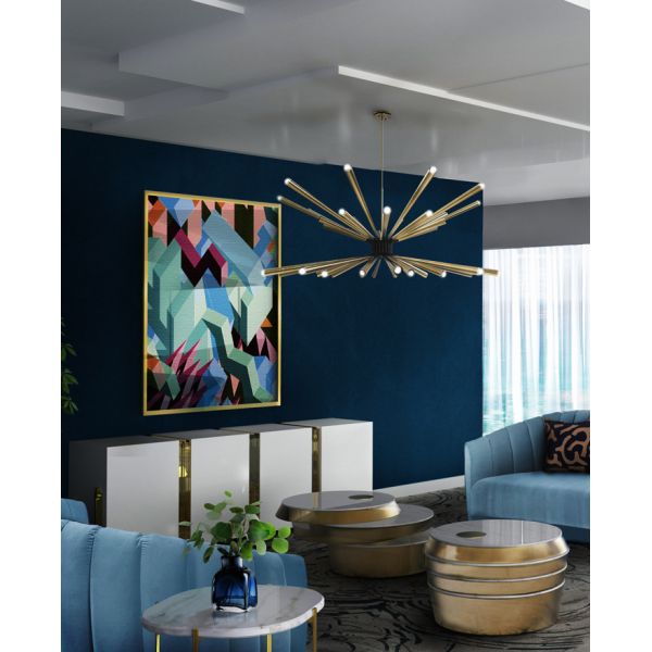 The gold plated brass asymmetric bars give the extraordinary touch in framed of this particleboard ends with a textured surface used black lacquer finish.