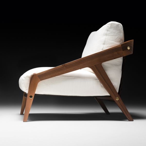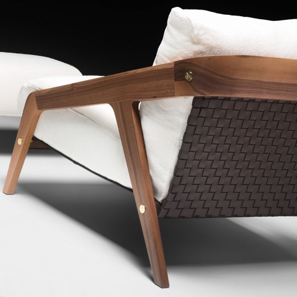 The Italian Designer Contemporary Walnut Arm Chair and Footstool is the ultimate in?modern?style, unique in its simplicity. Easily adapted in any room of the house, originality as well as beauty. Of an outstanding sophistication, charming elegant beauty a