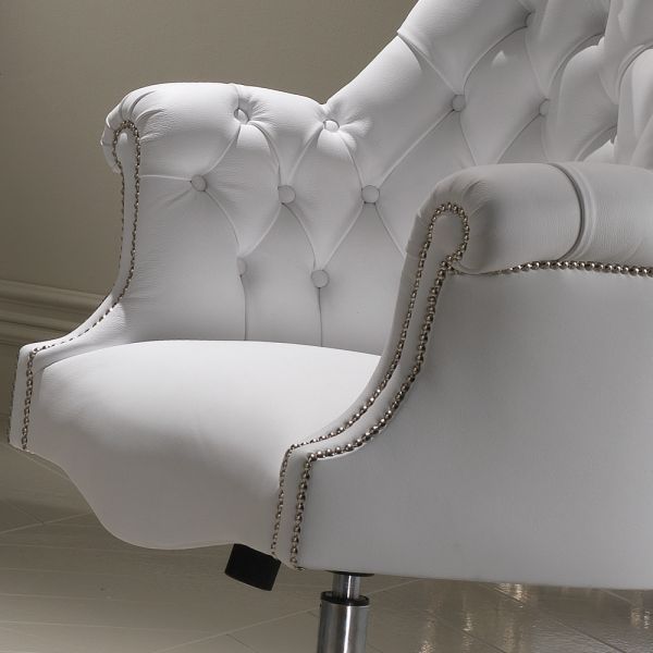 Luxury Italian White Leather Executive Office Chair. Create a super stylish office or boardroom with this sumptuous swivel executive chair offering the ultimate in Italian style and comfort. Hand-crafted from solid wood and superbly padded and upholstered