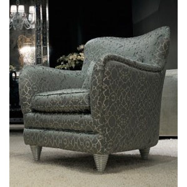 Comfy and luxurious Italian lounge armchair available in the fabric shown or various alternatives to choose including customers own fabric. Silver solid wood spiral feet.?