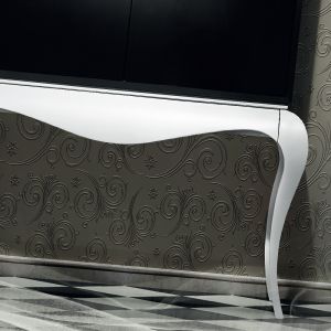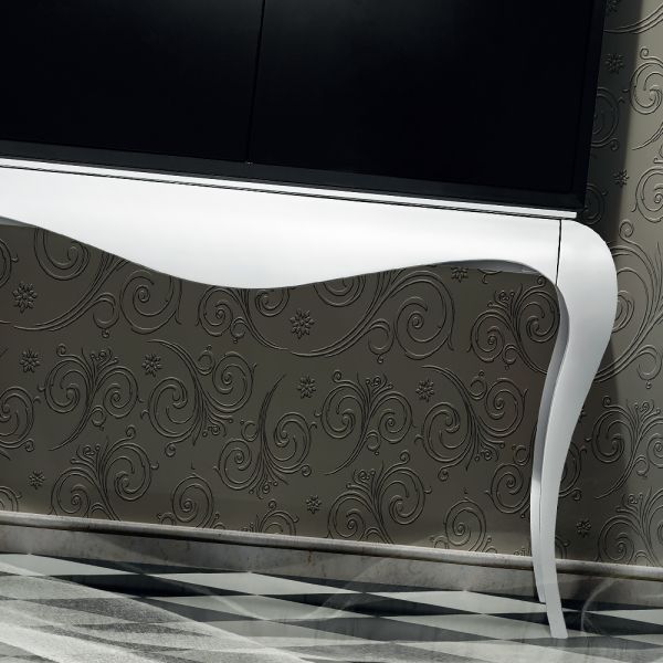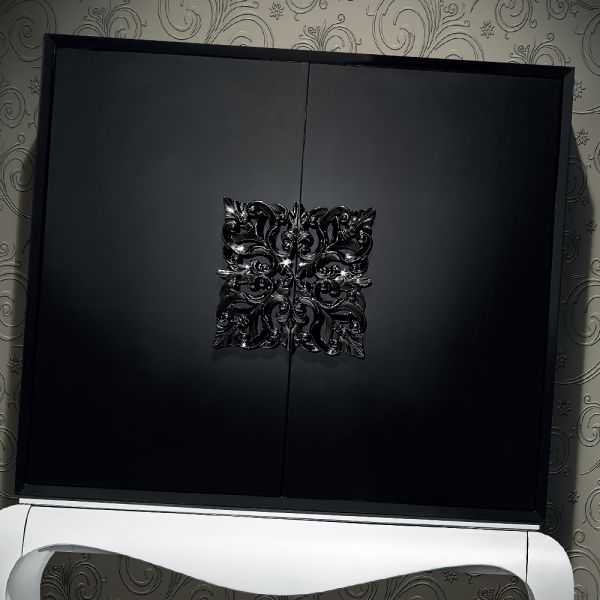 Contemporary Black And White Luxury Cocktail Cabinet. This fabulously glamorous cocktail cabinet offers a beautifully unique striking design, combining contemporary and classic design elements. Made of solid cherry wood and finished in superb contrast wit