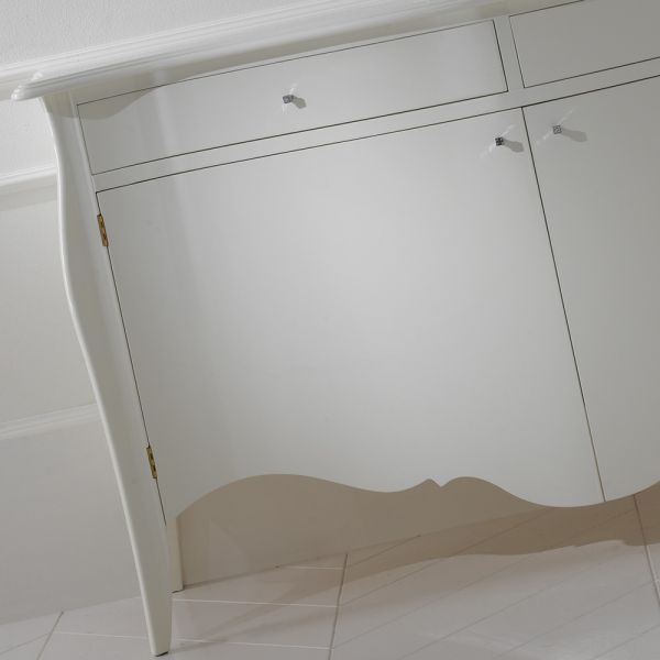 A solid beech wooden structure in a high gloss fresh white lacquered finished.