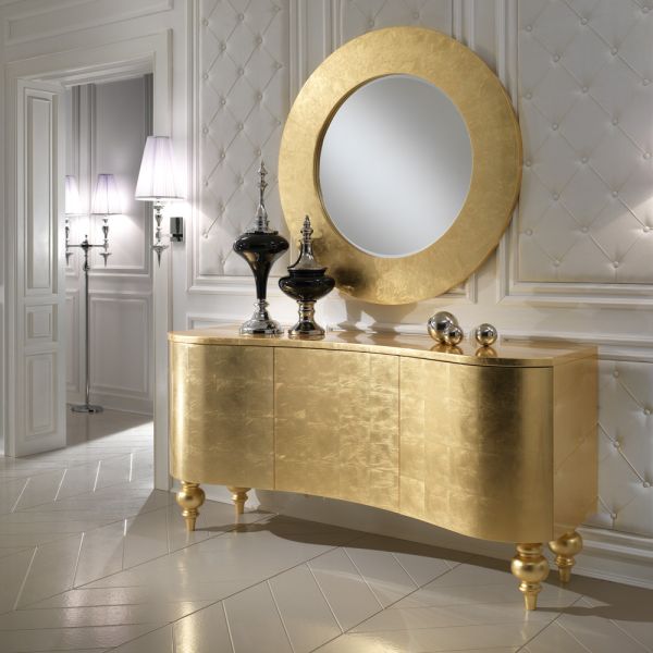 A solid beech wooden structure curvaceous by design, with a striking gold leaf finish to the structure and statement wood turned legs.
