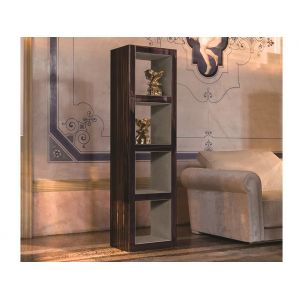 London Collection Modern Designer Bookcase. Shown here finished in dark high gloss Sycamore wood veneer together with stainless steel components.
