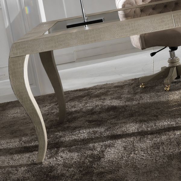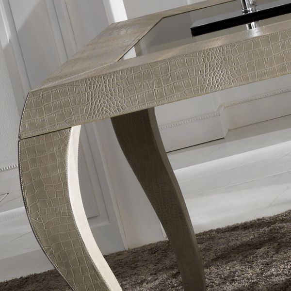The Italian Alligator Embossed Pattern Leather Desk is a writing table of distinction hand crafted in Italy. This seductive design adds a superbly glamorous addition to your home study. An incredibly stylish desk that is hand crafted in Italy and has been