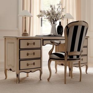 Reproduction Designer Italian Desk. Shown here in an ash grey, grey and silver finish, silver rose handles with a wooden top. This has right facing drawers, but is also available with left facing. Also available to order in different finishes and a marble