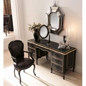 Reproduction Ivory and Black Italian Desk. Shown here in a two tone Ivory and Black finish with Polished brass rose handles. Also available to order in different finishes and a marble top.