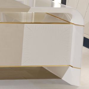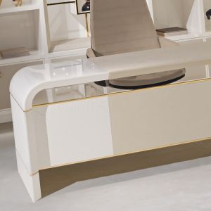 Contemporary Ivory Lacquered Executive Writing Desk. This seductive modern collection provides the ultimate in unique contemporary style indeed. Offering an unorthodox approach to design superbly executed to the highest standards in solid wood by master c
