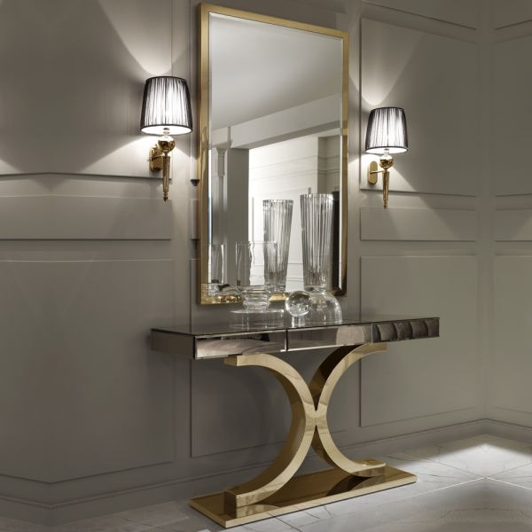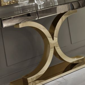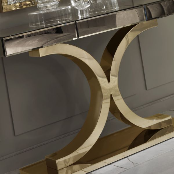 he Designer Italian Bronze Mirrored Glass Modern Gold Console is a stylish addition to any modern interior. Notably embracing the very best of Italian contemporary design indeed. The Venetians have been making mirrored furniture for centuries. This consol