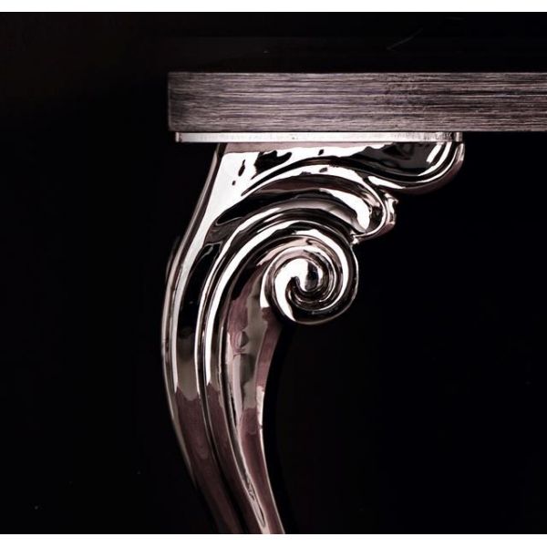 The Designer 2 leg Italian console hall table, shown here with a sand blasted solid oak 4.5 cm top and polished nickel legs. This item is available to order in a variety of alternative coloured tops including all RAL high gloss painted finish, leather, go