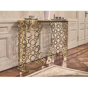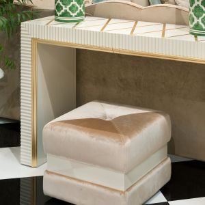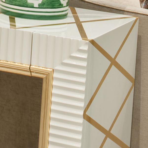 High End Modern Italian Ivory Gold Leaf Console Table Set. This modern console table made from solid beech wood and finished in a high gloss and with gold-leaf diamond pattern. 2 drawers. Height 90 cm x width 140 cm x depth 45 cm. Available to order in va