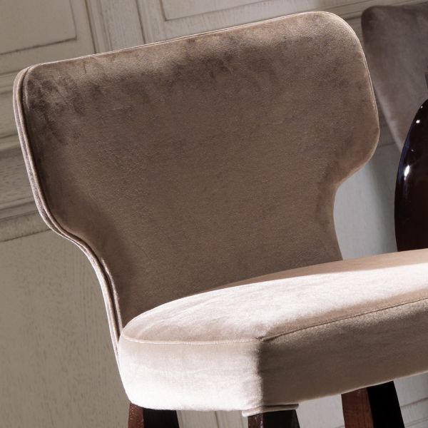 Shown here upholstered in the highest quality velvet with fine detailing in an antique burnished brass