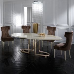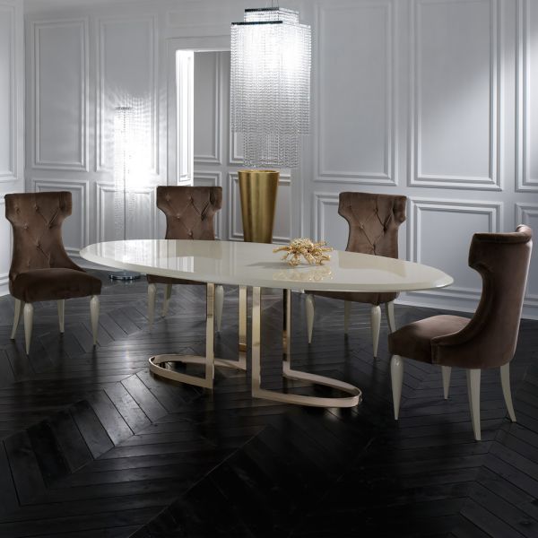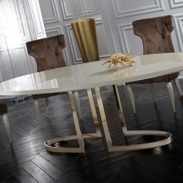 The Italian Designer Lacquered Gold Oval Dining Table is truly striking. For intimate evening suppers this gorgeous dining table offers outstanding style and comfort providing the ultimate sophisticated dining experience. A stylish contemporary wooden tab