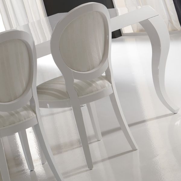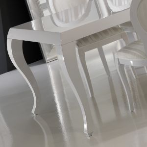 The London Collection Extending Dining Table is shown here finished in a dark high gloss Sycamore wood veneer with stainless steel inset detailing on the outer table top rim and pedestal