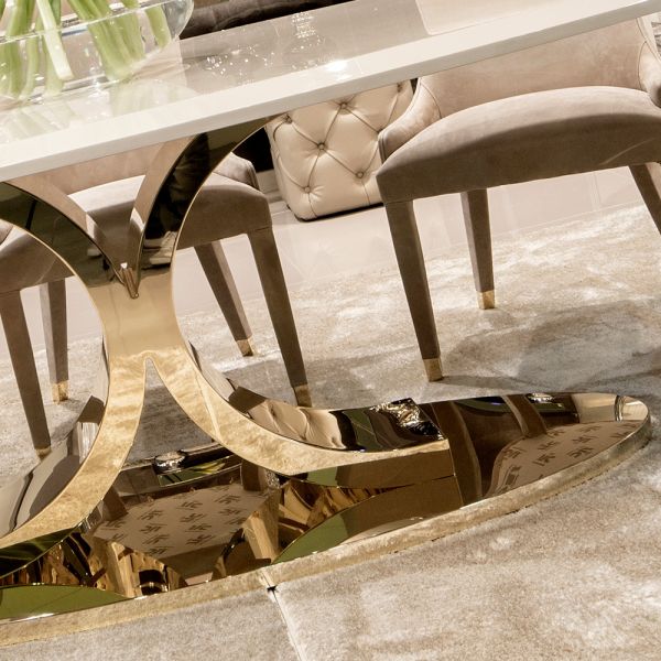 The High End 24 Carat Gold Oval Designer Dining Table Set, make a superb statement with this utterly fabulous statement set. Modern designs manufactured to the highest quality by the finest Italian furniture makers. Offering new dimensions in home or busi
