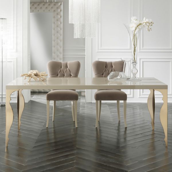 The Modern 24 Carat Gold Italian Designer Rectangular Dining Set, a gorgeous dining set that offers outstanding style. Manufactured to the highest quality by the finest Italian furniture makers indeed. Of notable opulence, not only adding a touch of glamo