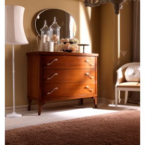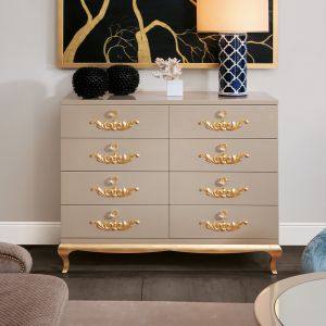 French luxurious cherry wood chest of drawers made to the highest standards from solid carved cherry wood and then lacquered with modern wrought iron handles finished in silver leaf