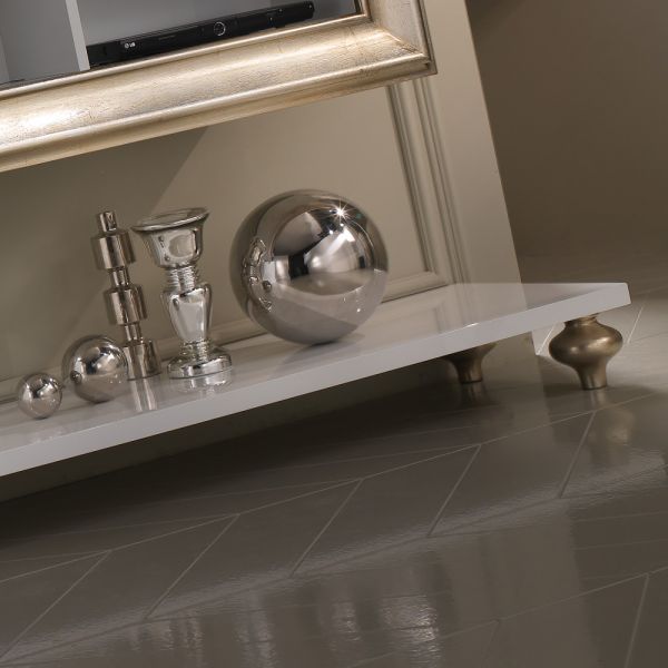 Beautifully finished with a fabulous high gloss white lacquer, together in perfect contrast with gold leaf onion wooden turned legs.