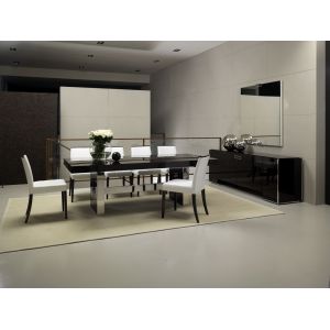 London Collection Italian walnut extendable dining table. Italian walnut extendable dining table in dark wood veneer finish with high gloss lacquer