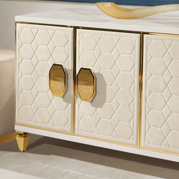 Four large gold octagon handles, fully hand-made and embellished with a beautiful panther engraving provide a stunning focus.