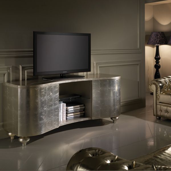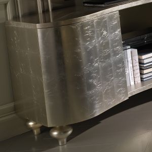 A solid beech wooden structure curvaceous by design, with a striking champagne leaf finish to the structure and statement onion wooden turned legs.