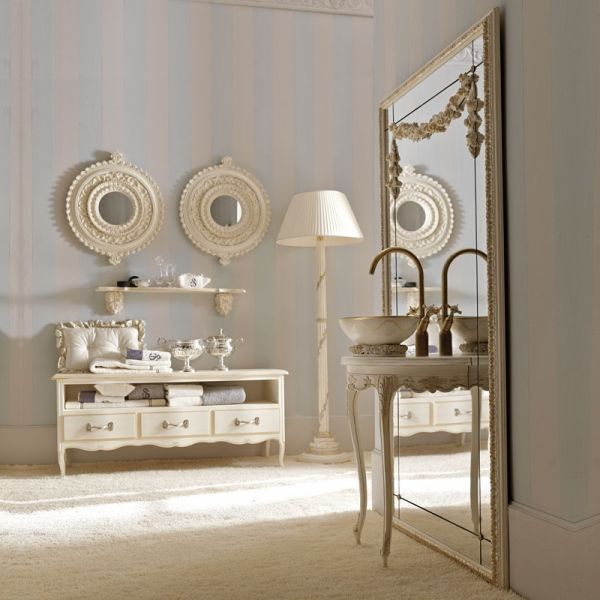 The Italian 3 Drawer Cabinet with rose ornate rose handles is shown here in an ivory finish with hand painted bleached gold elaborate detailing and a wooden top