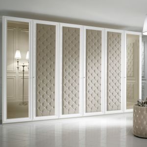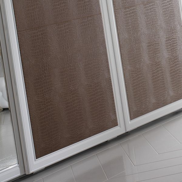The Large Alligator Embossed Leather Sliding Door Fitted Wardrobe, shown here with two of the doors mirrored and two upholstered to the highest standard in a luxury alligator embossed leather.