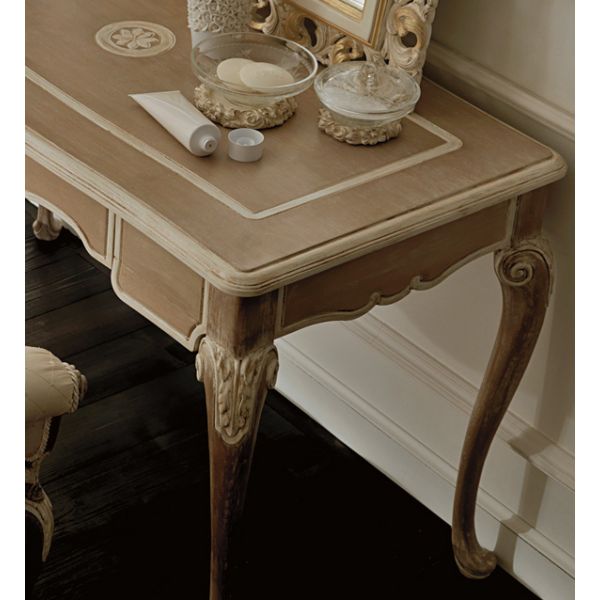 Shown here in a rustic wooden and ivory finish with a wooden top, also available to order in different finishes and a marble top.