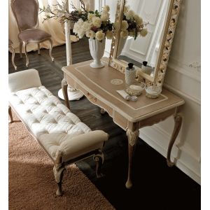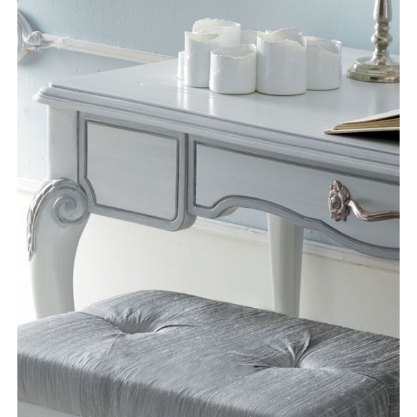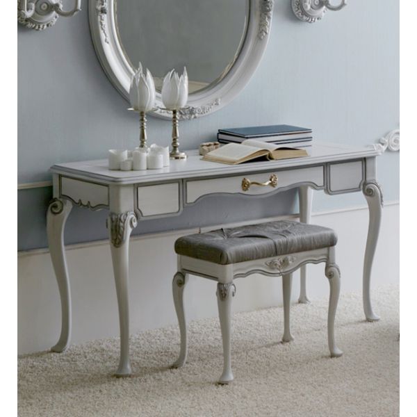 Shown here in an antique white and bleached silver finish with a wooden top, also available to order in different finishes and a marble top.