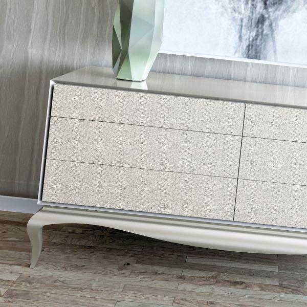 Made of solid wood the minimalist rectangular design is complimented in contrast by silver curved cabriole style legs.