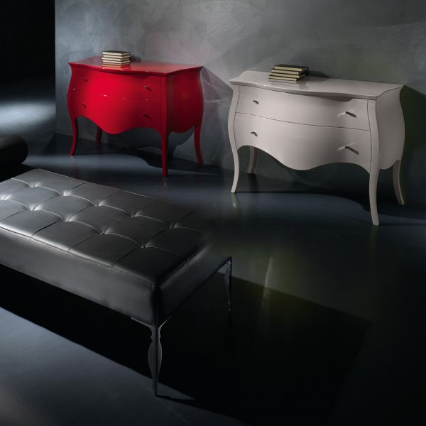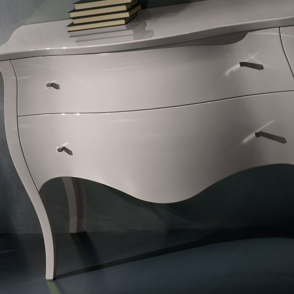 Finished in a vibrant white high gloss lacquered finish, finally completed with striking delicate square chrome Swarovski crystal handles creating a sensational piece.