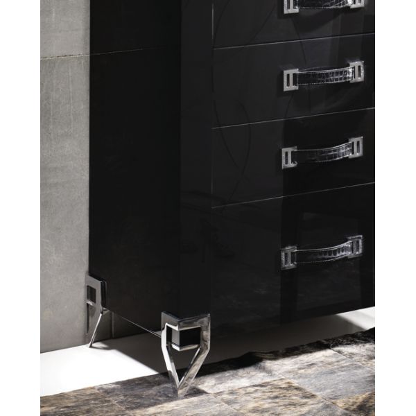 The London Collection Modern Designer Tall Boy is shown here in a black high gloss lacquer finish.