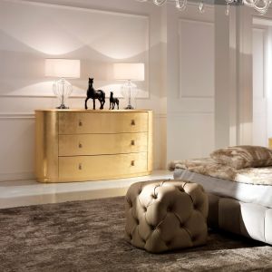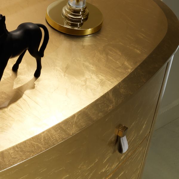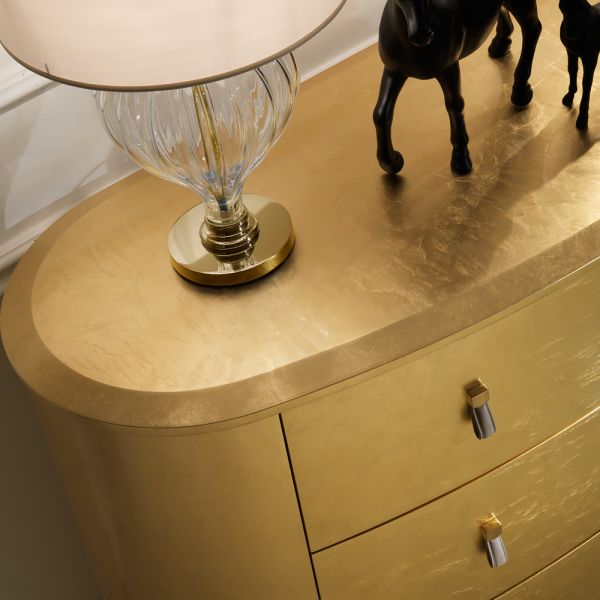 Sleek curves are finished with beautiful gold leaf casting a luxurious presence.