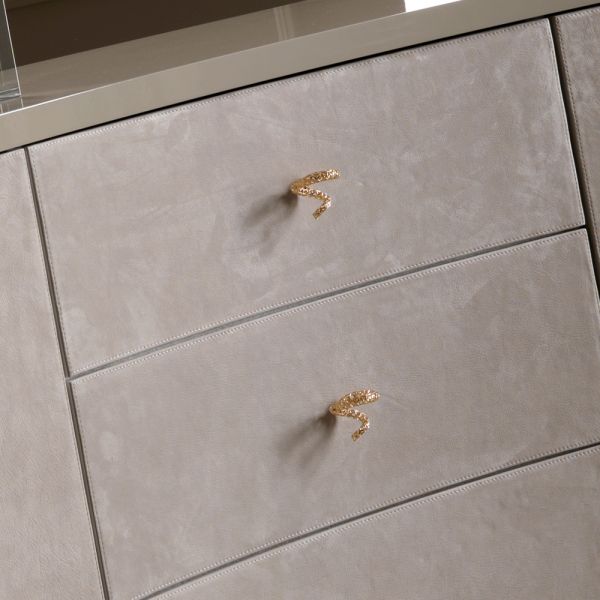 Shown here in a luxurious taupe RAL lacquered finish, together with striking polished 24 carat gold dipped designer legs.