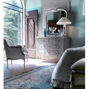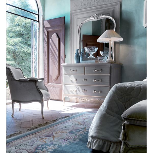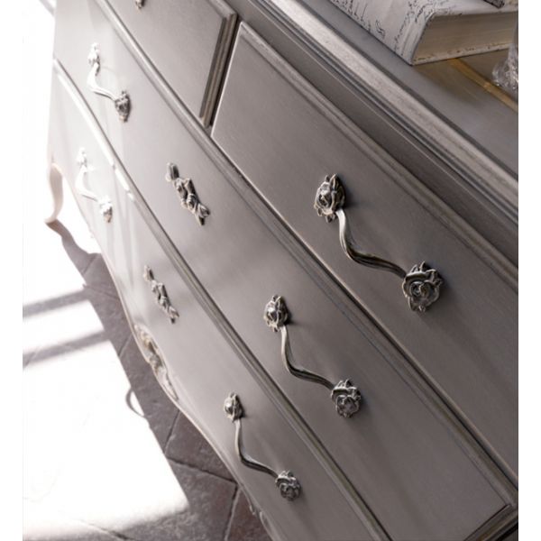 Shown here in a dusty grey with hand painted silver elaborate detailing and a wooden top.