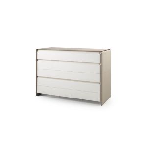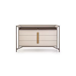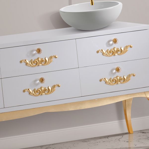 Modern Italian White Lacquered Bathroom Vanity. Made from solid beech wood and finished in a high gloss white lacquer with gold leaf legs and a glass top.