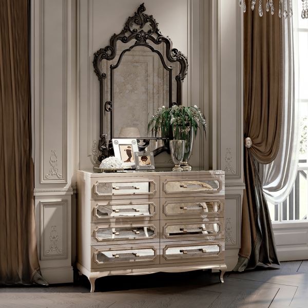 This fabulous chest of drawers is made from solid beech wood and finished in a white high gloss lacquer.