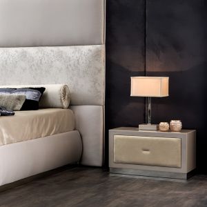 The Italian Designer Glossy Silver Leaf Bedside Cabinet with two discreet drawers adds a touch of sparkle whilst being a versatile storage solution suitable for any room in the house. Shown here in a luxurious silver leaf finish to to the drawers and base