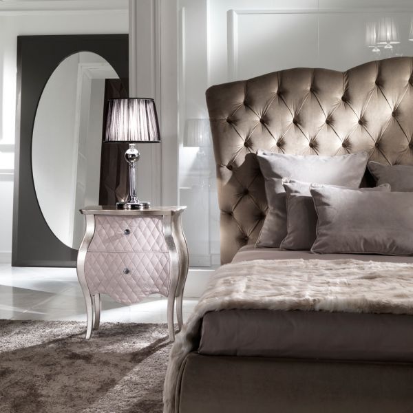 The Quilted Leather Silver Leaf Bedside Cabinet with 2 fully lined drawers with an integrated soft close bluemotion system for effortless closing adds a touch of glamour to any setting. This beautiful bedside table is the most stunning understated additio