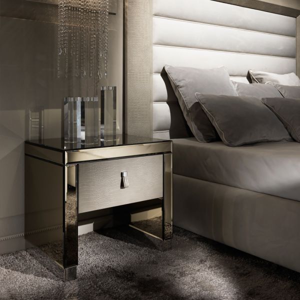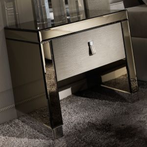 The Modern Mirrored Alligator Embossed Leather Bedside Table with drawer is the most stunning piece of contemporary design. Truly versatile. Use as a bedside table, modern side table or as a welcome in any hallway. Adding contemporary style and sophistica