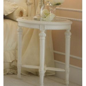 The Designer Reproduction Italian round side table with glass top is shown here in a luxurious antique white. Also available to order in different finishes and a wooden or marble top. Height 69 cm x width 50 cm x depth 50 cm. Made to highest standards