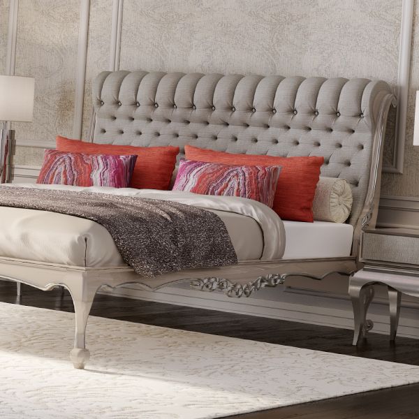 Classic Grey Roll Top Button Upholstered Bed. Timeless elegance along with fine details and finishes provide the focus for this classically styled bed. The roll top headboard is superbly designed and button upholstered in a luxury grey linen fabric. Combi