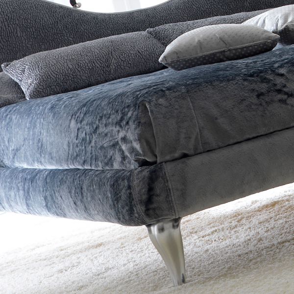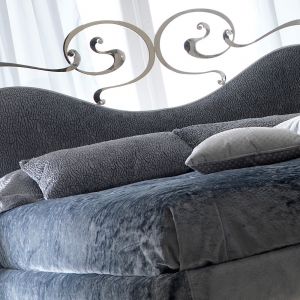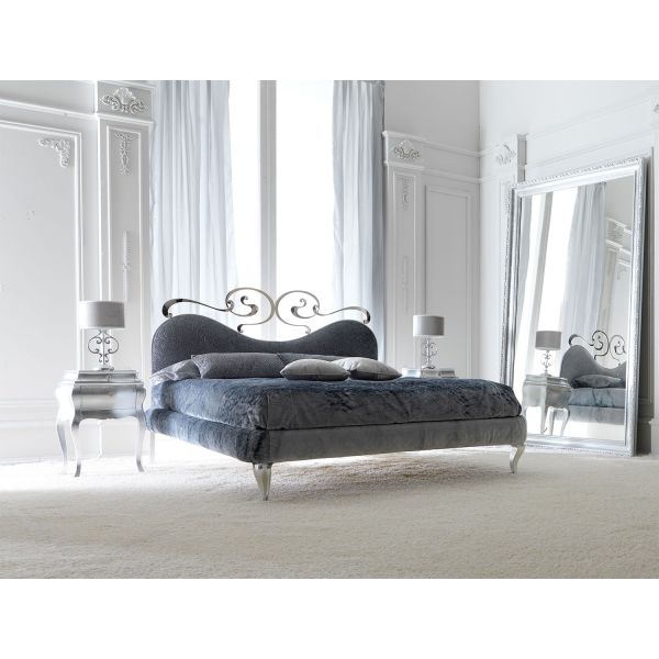 The Designer Upholstered Silver Swirls Bed is an eye catching addition to any bedroom. A touch of grace and style, adding the upmost in glamour and extravagance to any setting. Shown here with a high gloss silver leaf painted finish to the beautiful swirl