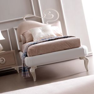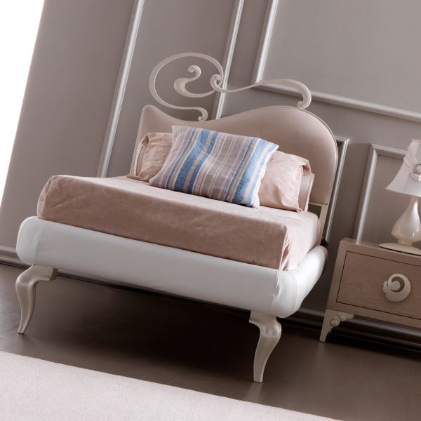 The Designer Leather Single Bed With Ornate Headboard is a statement addition to any bedroom. A touch of grace and style, adding the upmost in glamour and extravagance to any setting. Shown here with a high gloss white pearl painted finish to the beautifu