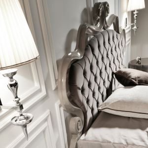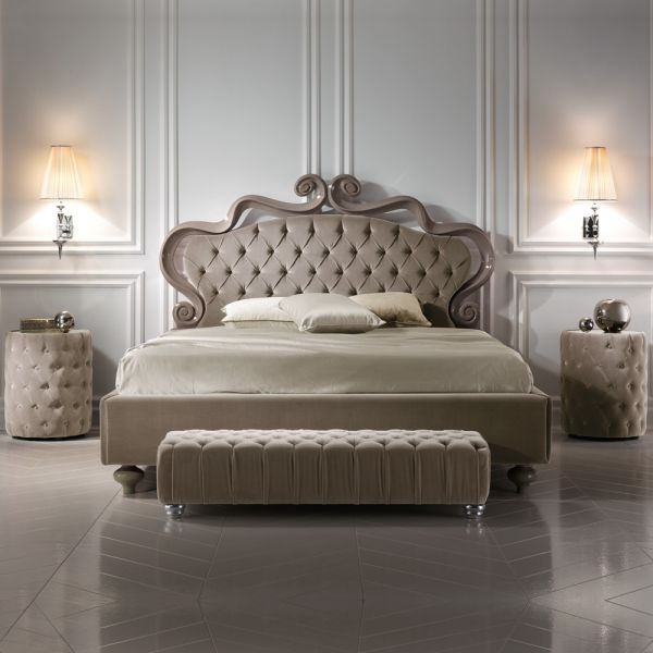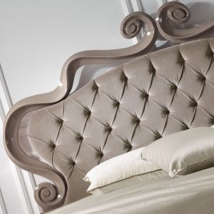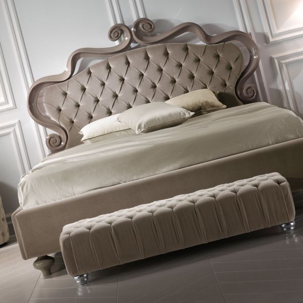 The Italian Contemporary Designer Lacquered Velvet Bed, is striking. The romantic curves of the solid wooden headboard being the primary focus to this fabulous design. Made from solid wood it is beautifully curved and scrolled creating a remarkable featur