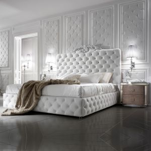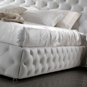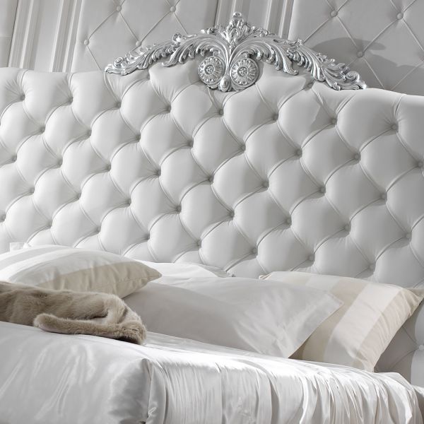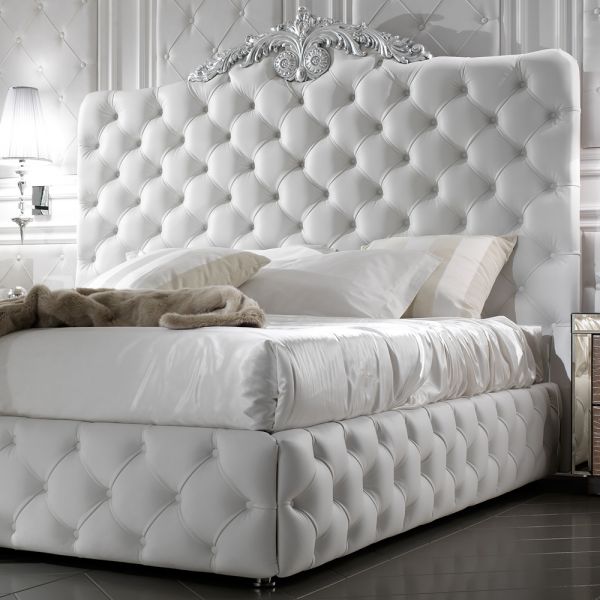 The Exclusive Luxury Italian White Leather Bed, a truly fabulous addition for a modern glamorous bedroom design. The solid wood headboard and frame are superbly button upholstered in a premium white Italian leather, which also has an option to include Swa