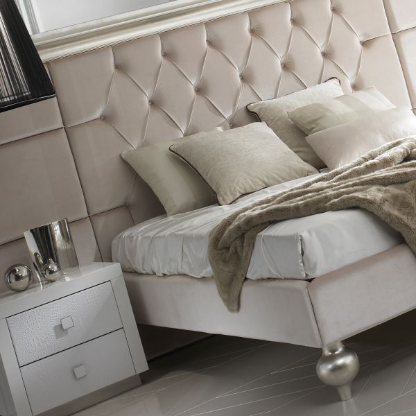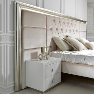 The High End Designer Italian Extended Headboard Bed is a true statement addition to any bedroom, every inch a prominent feature of outstanding style and design. Made by the finest Italian furniture makers. The striking dimensions of the headboard provide
